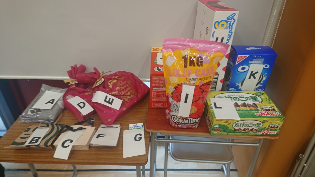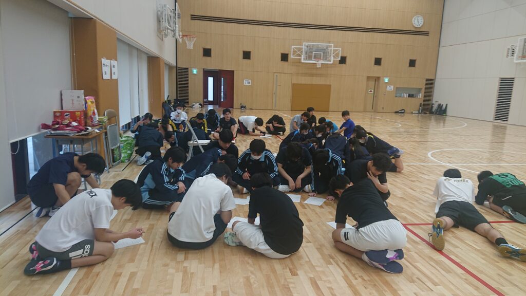 練習の最後には、お楽しみ会として、豪華(?)景品をかけたトレーニングと謎解きの競争を行いました。