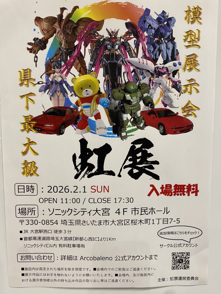 令和8年2月1日(日)に、埼玉の「大宮ソニックシティ」で開催された『虹展』に、今年も参加してきました。『虹展』コンテストではなく、一般のモデラーが集う展示会です。参加者のほとんどがセミプロモデラーばかりで、レベルの高い展示会となっています。
