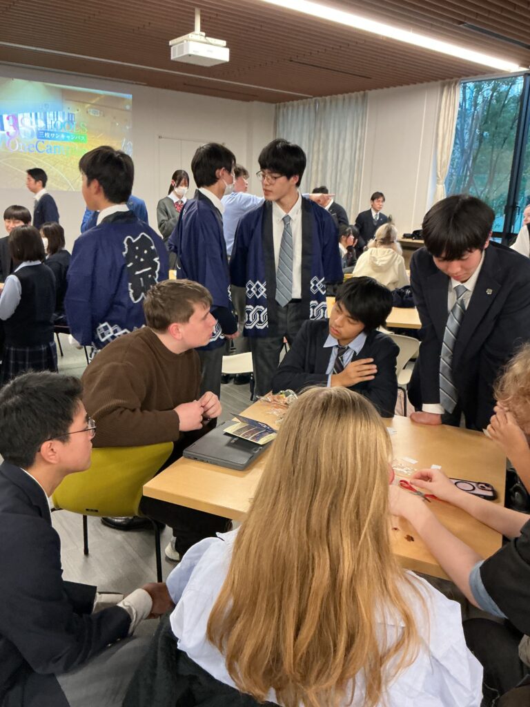 京華女子校のラウンジを使用しての三校企画が初めて実施され、学園三校の生徒が楽しそうに留学生を交えて交流しているのがとても印象的でした。