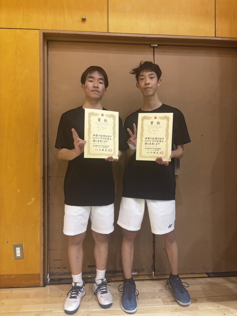 令和8年3月20日㈮に都立六郷工科高校にて、バドミントン部新人戦Ⅱ部が行われ、ダブルス部門で1年生2名が優勝しました。